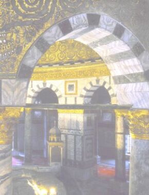 | Resulullah'ın miraca çıkarken bastığı kaya. İsrâ ve mirac olayı Yüce Allah'ın sevgili peygamberine bir mükâfatı ve ilâhi bir mucizesidir. |