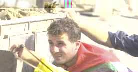 | HAMAS bayrağını kuşanmış bir genç. HAMAS sadece bir eylem örgütü değil bir kitle örgütüdür. Bugün Filistin'de en geniş kitle tabanına sahip örgüt olduğu ve gittikçe de arkasındaki kitlesel desteğin arttığı biliniyor. |