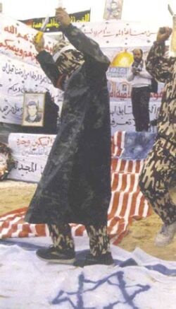 | HAMAS lehine bir gösteri. HAMAS siyonist düşman karşısında verilecek mücadeleyi yönetmenin en güzel yolunun kalabalık halk kitlelerini cihad bayrağını taşımaya, mümkün olan her yolla siyonist varlığa karşı savaşmaya yöneltmek, özelde Arap toplumlarını ve genelde bütün İslâm ümmetini ayağa kaldırmak suretiyle düşmana karşı topluca mücadele edilmesi için gereken şartları oluşturmak, mücadele ateşini her zaman alevli tutmak, mevcut enerjileri harekete geçirmek ve devreye sokmak suretiyle kuvvet üstünlüğü için gereken sebeplere başvurmak, hareket ve siyâsi karar birliği sağlamak olduğu görüşündedir. |