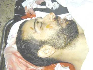 | İşgalcilerin saldırısına maruz kalarak şehit olan bir HAMAS mensubu. HAMAS işgale karşı mücadelede pek çok şehit vermesine rağmen direniş konusundaki kararlılığından hiçbir taviz vermedi. |