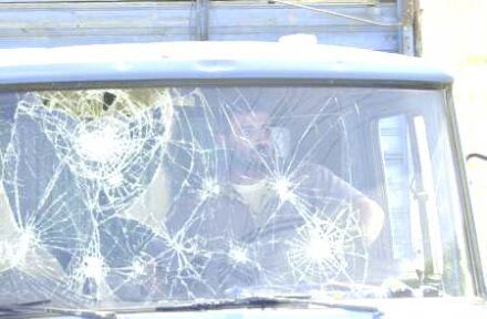 | el-Halil'de işgalcilerin saldırısına uğramış, Filistinlilere ait bir araç. İsrail'in Sivilleri olarak bilinen yahudi yerleşimciler Filistinlilere ve araçlarına sık sık bu tür saldırılar düzenlemektedirler. |