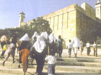 | el-Halil şehrinin sembolü durumundaki Hz. İbrahim Camisi. Yahudilerin el-Halil'e büyük önem vermelerinin ve şehrin tam merkezine yahudi mahallesi kurmalarının asıl amacı Hz. İbrahim Camisi haremini istila etmek ve orayı tamamıyla bir yahudi sinagoguna çevirmekti. |