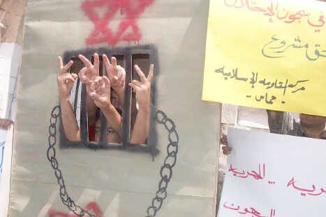 | Zindanlardaki Filistinlilerle dayanışma için düzenlenen bir etkinlik. Arafat'ın DGM'si 22 Nisan'da açıkladığı bir kararla Gazze İslâm Üniversitesi'nde öğrenci olan evli ve üç çocuk babası Hâlid İsâ Mutlak adlı HAMAS mensubu bir genci 4 yıl hapis cezasına çarptırdı. Yine aynı gün bir diğer HAMAS mensubu, Han Yunus İlimler ve Teknoloji Akademisi öğrencisi Muhammed es-Seyyid sekiz yıl hapis cezasına çarptırıldı. Arafat'ın DGM'si bu kararlarla gaza basmış oldu ve artık yeni zulüm kararları vermek için önünü açık görmeye başladı. Dolayısıyla sonraki günlerde de yeni hapis cezaları verme cüretini gösterebildi. Arafat yönetimi bu zulmü uygularken İslâmi hareketin, Filistin halkının birbirine düşmemesi için gösterdiği hassasiyeti de istismar ediyordu. |