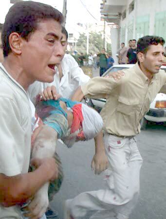 | Özerk yönetim polisinin 22-12-2001 tarihinde Cibaliya mülteci kampını basarak dehşet saçması sebebiyle hayatlarını kaybeden altı Filistinli çocuktan biri. Ne yazık ki özerk yönetim polisinin saçtığı bu dehşet Filistinliler arasına fitne tohumlarının ekilmesine sebep olmuş ve böyle siyonist işgalcilerin amaçlarına hizmet etmiştir. Arafat yönetiminin zulüm uygulamalarının temposunda İsrail işgal devletindeki siyasi değişimlerin büyük rolü olmaktadır. Bu da bunca zulmün birinci ve öncelikli amacının İsrail işgal devletine yaranmak olduğunu açıkça ortaya koymaktadır. Zaten çoğu zaman tutuklamalar, İsrail ve ABD'nin telkinleriyle yapılmaktadır. Özellikle belli dönemlerde Arafat'ın adamlarıyla İsrail işgal devletinin adamları arasında özel güvenlik görüşmelerinin yapılmasının ardından özerk yönetimin zulüm ve şiddet uygulamalarında artış olması bu gerçeği belgelemektedir. |