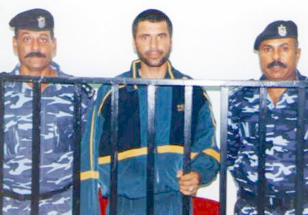 | Mahmud Ebu Henud'un işgalci siyonistlerin kuklası özerk yönetim tarafından yargılandığı sırada çekilmiş bir fotoğrafı. Mahmud Ebu Henud, Filistin İslami Direniş Hareketi (HAMAS)'ın askeri kanadı durumundaki İzzettin Kassam Birlikleri'nin Batı Yaka bölgesi sorumlusuydu. O, Filistin halkının bağımsızlığı ve kutsal Filistin topraklarının işgalden kurtarılması için verilen mücadelede sürekli ön saflarda yer almaya çalıştı. |