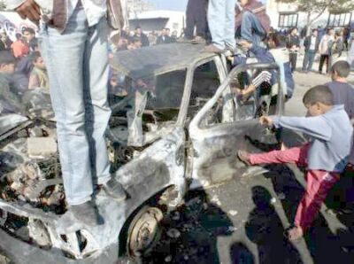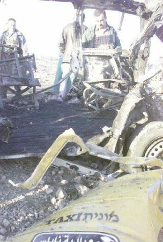 | HAMAS'ın askeri kanadının önemli liderlerinden Mahmud Ebu Henud'un işgalci vahşilerin saldırısına maruz kalan ve üzerine on adet roket fırlatılan aracı. Beyrut kasabı Filistin direnişini kırma amacına yönelik tasfiye operasyonlarından birinde HAMAS'ın askeri kanadının Batı Yaka bölgesi sorumlusu Mahmud Ebu Henud'u şehit etti. 23 Kasım 2003 Cuma gecesi gerçekleştirilen bu operasyonda Batı Yaka'nın Yasayd bölgesinde Ebu Henud'un arabasına havadan on roket fırlatılmıştı ve onunla birlikte iki arkadaşı da feci bir şekilde şehit edilmişlerdi. Öyle ki cesetlerin parçaları etrafa dağılmıştı ve hangi organın kime ait olduğu ancak hastane laboratuvarındaki teşhisle belirlenebilmişti. İşte bu olay Filistin'deki kavganın biraz daha gerginleşmesine sebep oldu. |