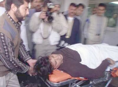 | Arafat'ın polisleri tarafından yaralanan gençlerden biri. Polisler bazen sokağın ortasında insanların üzerine ateş ettiler. Gazze'de HAMAS mensubu Ekrem Selâme adlı bir genç polislerin sokağın ortasında hiçbir sebep yokken üzerine ateş etmeleri sonucu orta derecede yaralandı. 18 Kasım 1994'te yine Gazze'de polislerin, cuma namazından çıkan insanların üzerine ateş açmaları sonucu gerçekleştirdikleri katliam hatıralardan silinmiş değil. |