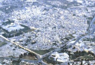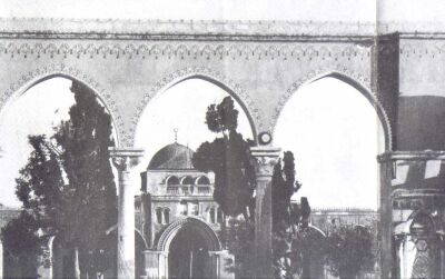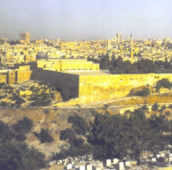 | Mescidi Aksa ile Kubbetu's-Sahra'nın her ikisini de içine alan etrafı surlarla çevrili olan Harem-i Şerif adlı bölgenin genel görünümü. |