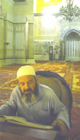 | Mescidi Aksa'nın içinde Kur'an-ı Kerim okuyan bir Müslüman. Bu kutsal mekânların insanların gönül huzuru içinde ibadet edebilecekleri, Allah'a yaklaşma mutluluğunu hissedecekleri mekânlar olması gerekir. Ancak ne yazık ki siyonist işgalin sebep olduğu sıkıntı ve ızdırap bu huzurun hakkıyla hissedilmesini engelliyor. |