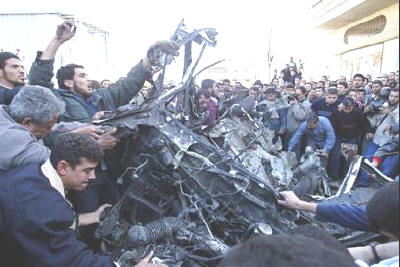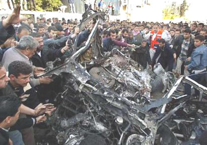 HAMAS'ın Gazze'deki Hareket Önderlerinden Dr. İbrahim el-Mukadime'nin Saldırıya Uğradığı Yer ve Kendisiyle Üç Arkadaşının Şehit Edilmesinden Sonra Ortaya Çıkan Manzaralar-1