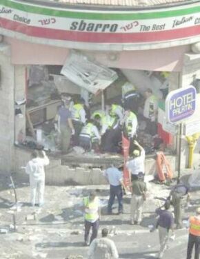 Kudüs'ün Yafa caddesinde gerçekleştiren istişhadi eylemden sonraki manzara. Eylemler şu ana kadar en azından Filistin'e yahudi akınının tümüyle durdurulmasını başarabilmiştir. Ariel Şaron seçmenlerine en az bir milyon yeni yahudi göçmeni getirtip yerleştirme sözü vermesine rağmen bir tek kişiyi bile getirtmeyi başaramadı. Filistin'deki yahudilerde doğal nüfus artışı oldukça düşük olduğundan yeni göçlerin durdurulması da insan potansiyelinin zayıflamasında önemli bir etkendir. |