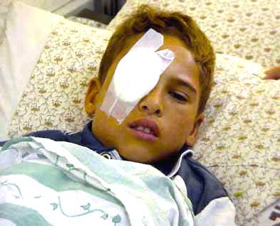 | Siyonist vahşetin mağdurlarından yine bir çocuk. Bu çocukların birçoğu askerlerin sokak saldırılarında kötü muameleye ve işkenceye maruz kalmaktadırlar. |