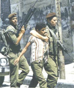 | Askerlerin tutuklama esnasında yaptıkları işkence ve aşağılama uygulamalarına bir diğer örnek. Uluslararası kurumların sessizliği işgalci siyonistleri bu konuda daha da cesaretlendirmektedir. |