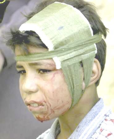 | İsrail vahşetinden pay alan çocuklardan biri. Siyonist vahşet zulüm ve işkencede çocuk büyük ayırımı yapmamaktadır. |