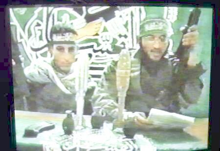 Gazze'nin kuzeyindeki İli Sinay yahudi yerleşim merkezine yönelik eylemi gerçekleştiren Cihad el-Mısri ve Mesleme el-A'rec eylemden önce çektirdikleri fotoğrafta. Bu eylemde İsrail'in ünlü bir nükleer silahlanma uzmanı öldürüldü |