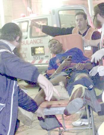 Kudüs eyleminden sonra yaralananlardan birinin taşınması. Siyonist işgal devleti bundan önce de Filistin direnişini ve Filistin halkının varlık mücadelesini kırma amacına yönelik olarak başvurduğu şiddet uygulamalarında, bu direnişin önde gelenlerini ortadan kaldırmak için gerçekleştirdiği vahşi cinayetlerinde hep aynı karşılıkları görmüştü. |