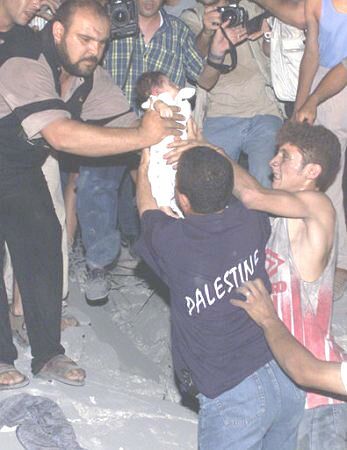 Salah Şehade'nin evine yönelik saldırıda şehit olan bir bebeğin cesedi çıkarılıyor |