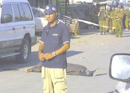 Batı Kudüs'ün Yafa caddesinde gerçekleştirilen istişhadi eylemden bir görüntü. Bir lokantada gerçekleştirilen şehadet eyleminde işgalcilerden 19 kişi öldü, 10'u ağır 100 kişi yaralandı. Eylemi HAMAS'ın askeri kanadı üstlendi. |