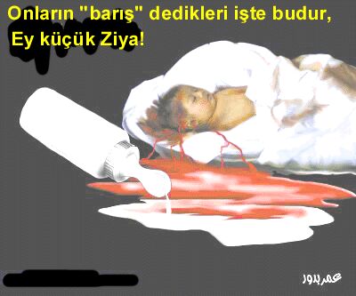 İşgalcilerin 5 Mayıs 2001'de Gazze'de Han Yunus mülteci kampına düzenledikleri saldırıda şehit olan 4 aylık bebek İman Haccu. Bu bebek annesinin kucağında bulunduğu sırada şarapnel parçasının isabet etmesi sonucu hayatını kaybetti. Saldırıda anne Suzan Haccu da ağır yaralandı. |