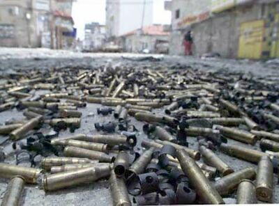 İşgalcilerin 28-31 Mart 2002 tarihleri arasında Batı Yaka'nın Ramallah ve Beytlaham şehirlerine yönelik olarak gerçekleştirdikleri vahşi saldırılardan geriye kalan mermi kovanlarının bazıları |