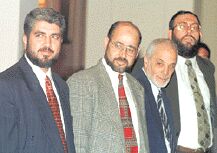 Halid Meşal, HAMAS'ın diğer üç siyasi lideriyle birlikte Ürdün krallığı tarafından sürgün edildiği sırada. Soldan sağa: Halid Meşal, HAMAS'ın eski Siyasi Birimi başkanı Dr. Musa Ebu Merzuk, HAMAS'ın resmi sözcüsü İbrahim Goşe, HAMAS'ın eski Ürdün resmi temsilcisi Muhammed Nezzal |