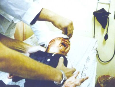 Fotoğraf 9: el-Halil'e giren işgal güçlerinin saldırılarında yaralanan yaşlı bir Filistinli