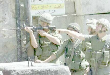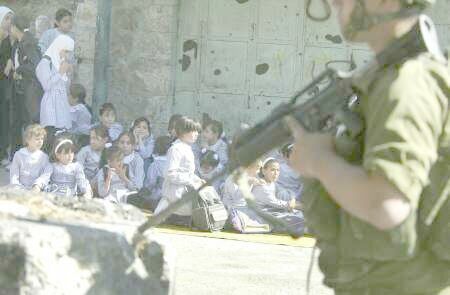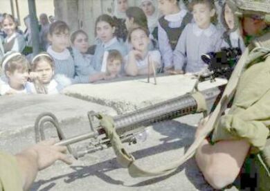 Fotoğraf 8: Bunlar el-Halil'deki işgalci askerler. Ama silahlarını özellikle okul çağındaki Filistinli çocuklara çevirmişler.